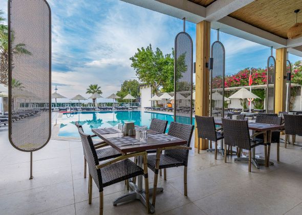 Основен ресторант, 1 сладкарница, 2 бара, 2 открити басейнa, СПА център, магазин, паркинг.