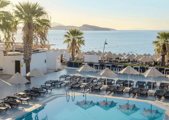 Намира се на 47 км от летище Бодрум, на 11 км от центъра на Бодрум, в район Ортакент, на брега на морето. Построен 1990 г., на обща площ от 17.000 м². Реновиран 2024 г.