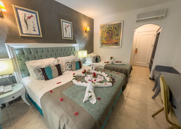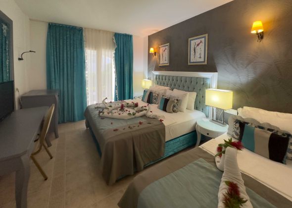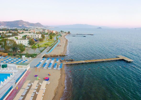 Хотелът се намира на 55 км от летище Милас, на 18 км от центъра на Бодрум, в района на Тургутрейс, на брега на морето. Последно реновиран през 2022 г.