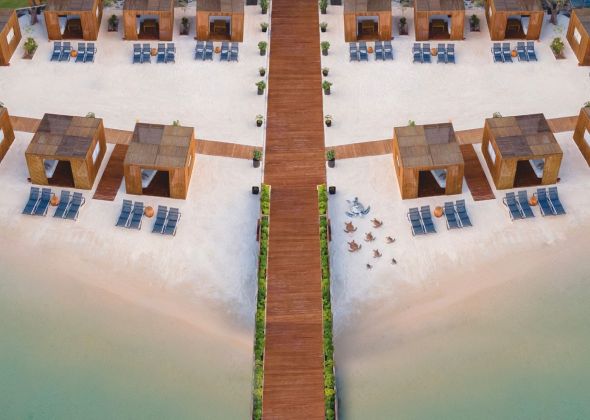 Частни вили (Private villas): Aphrodite Villa –  190 м², с гледка към морето. На първия етаж: хол, трапезария, кухня, баня; на втория етаж – 2 спални с врата, 2 бани, гардеробна, балкон, собствен басейн (1.40 м дълбочина), VIP зона на плажа –  максимум 5 души капацитет – VIP обслужване; 14 Apollon Villa – 280 м², с гледка към морето. На първия етаж: хол, трапезария, кухня, спалня с врата, гардеробна; на втория етаж – 3 спални с врати, 3 бани, балкон, тераса, собствен басейн (1.40 м дълбочина), VIP зона на плажа – максимум 7 души капаците – VIP обслужване; 11 Poseidon Villa – 330 м², с гледка към морето. На първия етаж: хол, спалня с гардеробна, трапезария, кухня, баня; на втория етаж: 4 спални с врати, 4 бани, балкон, тераса; собствен басейн, максимум капацитет 8 души, VIP зона на плажа, VIP обслужване; 3 Hermes Villa – 365 м², 1 основна спалня + 4 допълнителни, просторна дневна, собствен басейн; Zeus Villa – 450 м², 6 спални, дневна, трапезария, 5 бани; Presidential Villa – 800 м², 6 спални, дневна, трапезария, възможност за личен готвач.