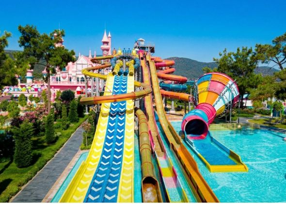 Основен ресторант, 7 а-ла-карт ресторанта (рибен, турски, италиански – 1 безплатно посещение на 1 от тези ресторанти при минимум 7 нощувки; световна кухня 24/7, азиатски, суши и гръцки – срещу заплащане, VIP ресторант на вилите, сладкарница, 4 бара, 7 открити басейна, голям аквапарк, приключенски парк, кино, амфитеатър, СПА център, дискотека, магазини, 3 конферентни зали, паркинг.