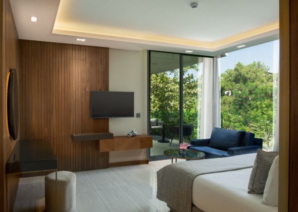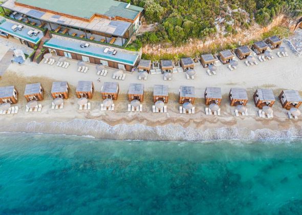 Частни вили: 21 Aphrodite Villa 190 m² (гледка към морето, на първия етаж: хол, трапезария, кухня, баня; на втория етаж – 2 спални с врата, 2 бани, гардеробна, балкон, собствен басейн (1.40м дълбочина), VIP зона на плажа, максимум 5 души капацитет, VIP обслужване). 14 Apollon Villa 280 m² (с гледка към морето, на първия етаж: хол, трапезария, кухня, спалня с врата, гардеробна; на втория етаж – 3 спални с врати, 3 бани, балкон, тераса; собствен басейн (1.40м дълбочина), VIP зона на плажа, максимум 7 души капацитет, VIP обслужване). 11 Poseidon Villa 330 m² (с гледка към морето, на първия етаж: хол, спалня с гардеробна, трапезария, кухня, баня; на втория етаж: 4 спални с врати, 4 бани, балкон, тераса; собствен басейн, максимум капацитет 8 души, VIP зона на плажа, VIP обслужване); 3 Hermes Villa (365 m², 1 основна спалня + 4 допълнителни, просторна дневна, собствен басейн), Presidential Villa (800 m², 6 спални, дневна, трапезария, възможност за личен готвач). *Информация за цени за частните вили ще получите при индивидуално запитване.