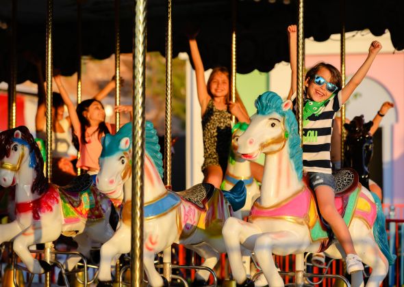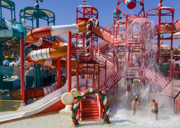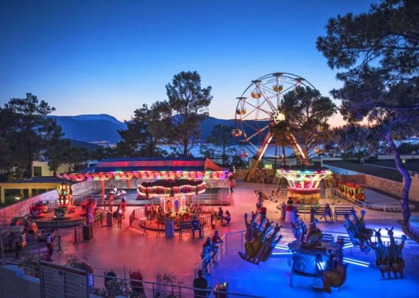 CANDYTOWN LUNA PARK е мястото за неверятно забавления по време на Вашия престой. Паркът представлява комплекс от различни забавления за всички възрасти. Малките гости могат да се забавляват в детското градче - миниатюра Portaventura Kids World (шопинг мол, пожарна, поликлиника, полиция, банка, театър, лего стая, фитнес и много други детски обществени сгради), с площ 5000 кв. м. Там могат да участват в различни групи за занимания и да получат сертификат. Разбира се, не трябва да пропускат и Лунапарка с 9 различни атракции включително виенско колело високо 17 метра, както и детска въртележка, картинг, лабиринт с лазер игри, детско влакче на ужасите и 8D кино. Има мини клуб за деца между 4 и 7 годишна възраст, който може да предложи на малките посетители детски фитнес, арт занимания, мини диско, игрална площадка, детска йога и безброй други забавления. За малко по-големите (на възраст между 8 и 12 години) в макси клуб се предлага търсене на съкровища, оригами, баскетбол, волейбол, водно поло, сумо игри, рали, футбол и още други. Тийнейджърите в хотела могат да посетят предвидения за тях клуб, в който играят тенис на маса, футбол, дартс, търсене на съкровища, игрална зала (playstation 5 и компютърни игри), бинго, баскетбол, кино, уроци и много други. Дино парк с 12 динозаври в реални размери. Най-новите атракциони са тематичния парк Candyland и виенското колело. Работно време в периода 01.05-15.10 от 20.00 до 23:00 (може да варират спрямо метеорологичните условия).