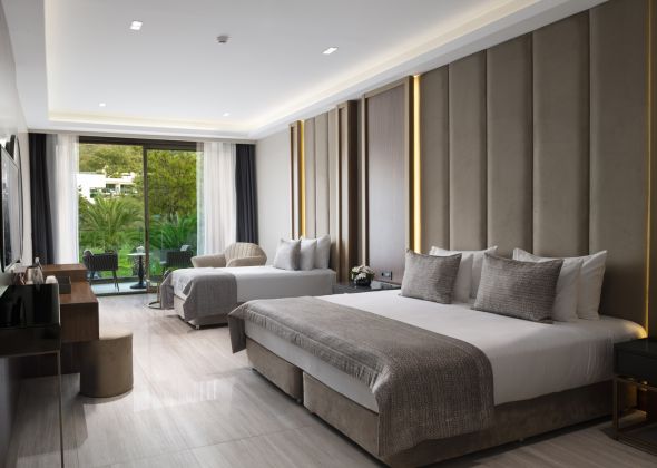 Хотелът разполага с общо 782 стаи и 52 частни вили. Хотелът се състои от 5-етажна основна сграда, в която са разположени Superior room land / sea view (50-55 m²), Corner Deluxe Room Land View - 75 m² (с просторно предверие и спалня, подходящи за семейства), Family Suit Land / Sea View - 75 m² (с две спални, разделени с врата и една баня). В 44 двуетажни сгради, всяка предлагаща лукс и различни удобства сред прекрасна градина са разположени стаите Garden Room Annex (32 m²), Superior Garden Room Annex (55 m²), Family Garden Room Annex - 75 m² (две отделни спални помещения с врата, една баня и балкон), Family Connection Room Annex - 90 m² (състои се от две спални и две бани, първата спалня е с двойно легло и балкон, а втората с две единични легла). В градината са разположени и частните вили.