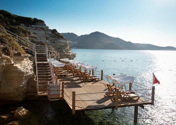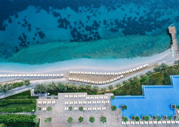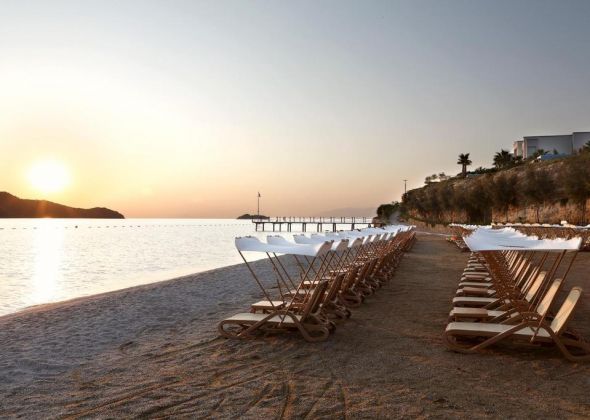 Собствен пясъчен плаж. Кей (използва се също така и за яхти). Чадъри, шезлонги на плажа и при басейна - безплатно.