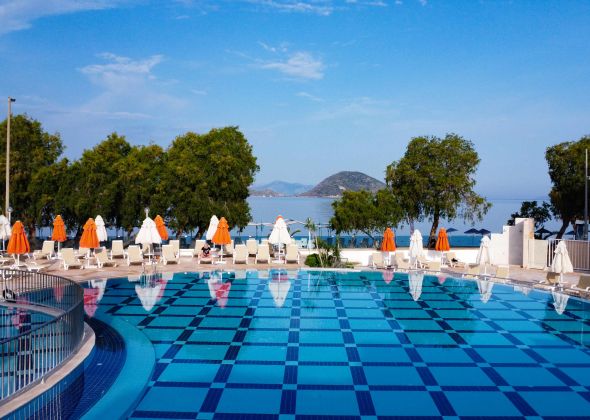 Намира се на 53 км от летище Бодрум, на 18 км от центъра на Бодрум, на центъра на Тургутрейс, на брега на морето. Построен 1990 г., на обща площ от 6.000 m². Реновиран 2025 г.
