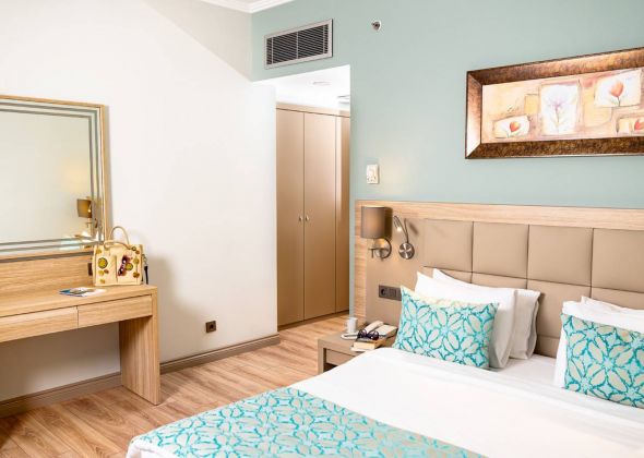 Хотелът разполага с 489 стаи: Standard Room (25 м²), Promo (25 м²), Superior Room (35 м²), Family Room (2 спални със/без свързваща врата - 35 м²), Superior Family Suite (2 спални, две бани - 55 м²) , Family Suite (2 спални, 1 баня - 41 м²) и стаи, пригодени за хора с ограничена подвижност (23 м2). Всички стаи са оборудвани с климатик, телевизор, телефон, баня с душ/вана, сешоар, сет за чай/кафе, минибар (ежедневно зареждане с безалкохолни напитки и вода-безплатно), сейф (безплатен), балкон. Почистване на стаите – всеки ден, смяна на спалното бельо и кърпите – 3 пъти в седмицата.