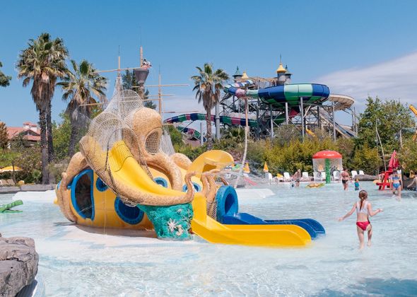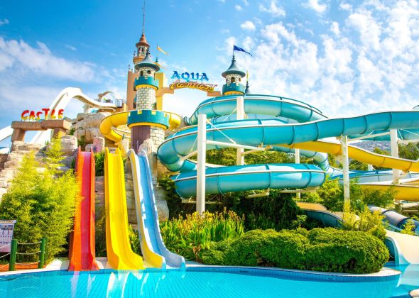 На разположение на гостите на хотела е аквапарк, който разполага с 31 водни пързалки, от които няколко екстремни (Super combo,Screamer, Crazy Raft, Boomerango, Space Bowl и др.), басейн със 7 вида изкуствени вълни, 400 метра дълга Lazy River, Lily Pad - място за срещи на родители и техните деца, а за по-малките деца са налични: голяма детска зона с пиратски кораб с 6 пързалки и интерактивни играчки, комплекс от пързалки „Подводен октопод“, жабешка пързалка и разбития кораб. Основни правила за ползване на Аквапарка: Не се препоръчва за хора с физически увреждания, сърдечни оплаквания и бременни жени. Деца на възраст под 12 години трябва да бъдат придружени от възрастен. Не се допуска използването на някои от пързалките от деца с височина под 120 см. Всички деца под 3-годишна възраст се изискват да носят "swim" памперси. Консумацията на хранa и напитки на теритотията на аквапарка е срещу заплащане.