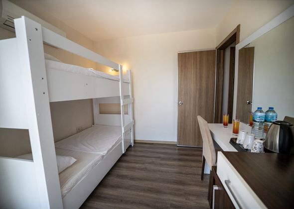 Хотелът разполага с общо 131 стаи, от които 116 Standard Room (24 м2) и 5 Junior Family Room (32 м2), 9 Family Room (45 м2). Всички стаи са оборудвани с климатик, телевизор, телефон, баня с душ, сешоар, сет за чай/кафе, минибар (безплатна мин. вода всеки ден), сейф (безплатен), балкон.