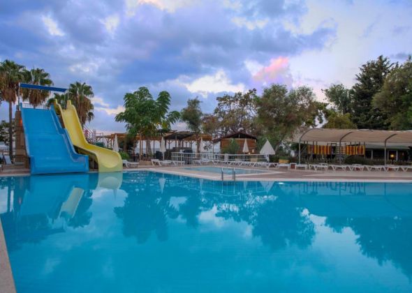 Основен ресторант, 3 бара, снек ресторант, дискотека, 2 открити басейна, 2 водни пързалки.