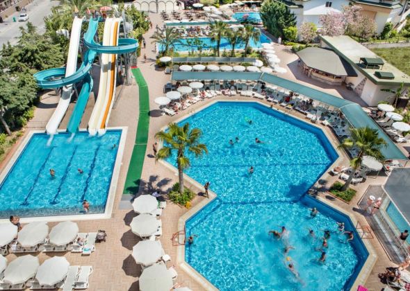 Намира се на 100 км от летище Анталия, на 110 км от центъра на Анталия, на 20 км от центъра на Алания, на 100 м от брега на морето. Построен 2003 г., на обща площ от 17 000 м2. Реновиран 2021 г.