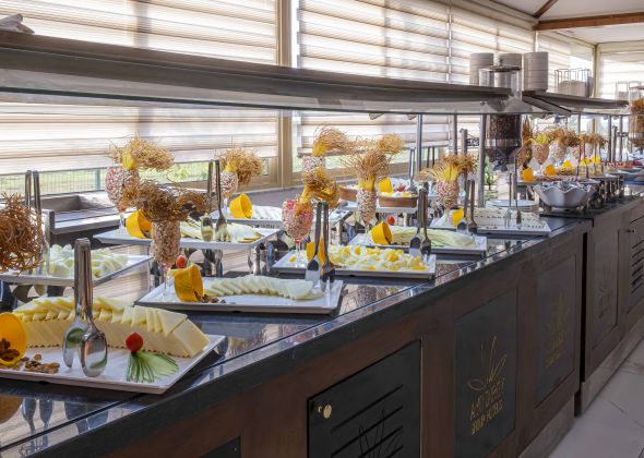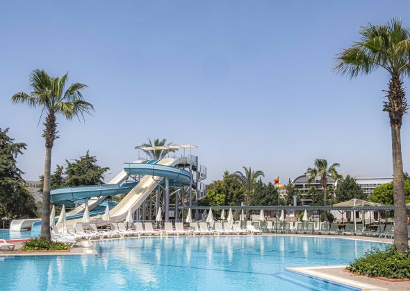 Основен ресторант, 3 а-ла-карт ресторанта (рибен, барбекю, италиански – 1 безплатно посещение на 1 от ресторантите при минимум 7 нощувки, с предварителна резервация), 2 снек ресторанта, сладкарница, 5 бара, 3 открити и 1 закрит басейн, 4 водни пързалки, СПА център, магазини, 2 конферентни зали.