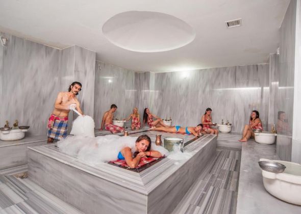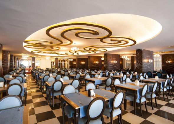 Основен ресторант, 1 а-ла-карт ресторант (срещу заплащане), снек ресторант на плажа, 4 бара, открит и закрит басейн, 2 водни пързалки, магазини, 1 конферентна зала.