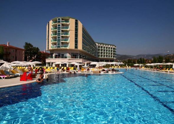 Основен ресторант, 3 Ала Карт ресторанта (турски, рибен, барбекю - с предварителбно записване, за 1 седмичен престой се полага 1 посещение - безплатно), 6 бара, 2 открити и 2 закрити басейна, 1 конферентна зала, SPA център, магазини, фризьорски салон. За децата: детски басейн, мини клуб, анимация, детска площадка. Безплатни услуги: сауна, турска баня, плажен волейбол, тенис на корт, тенис на маса, баскетбол, боулинг, безжичен интернет (на lobby). Платени услуги: масаж, игрални автомати, лекар, водни спортове. Плаж: Собствен - пясъчен. Чадъри, шезлонги и матраци на плажа и басейна - безплатно.