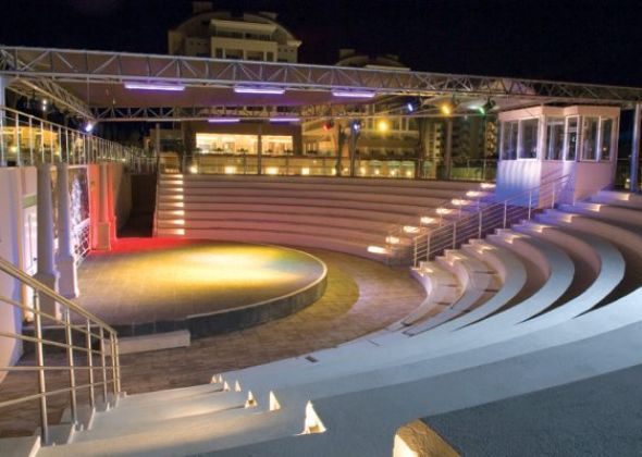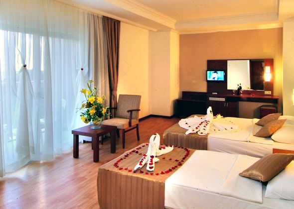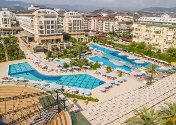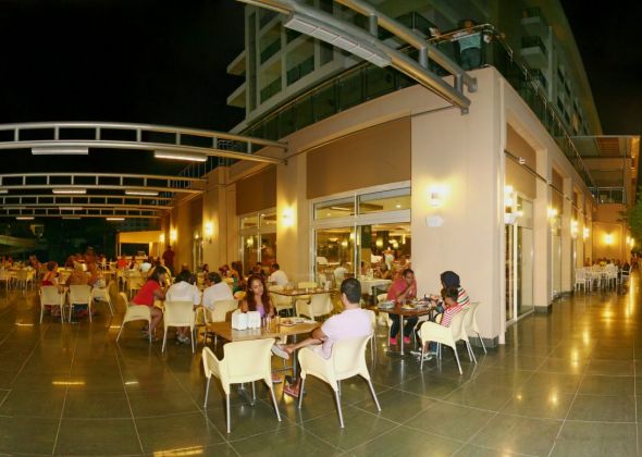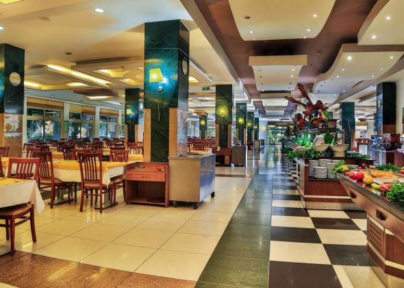 основен ресторант, 2 а-ла карт ресторант, 6 бара, откирт басейн, закрит басейн, 3 водни пързалки, спа салон, фризьор, 2 конферентни зали, безплатно: турска баня, фитнес, аеобика, баскетбол, аеробика, 2 тенис корта, тенис ракети под наем, баскетбол, анимации, безжичен интернет в лоби бар. платено - масаж, сауна, билярд, боулинг, осветление на тенис корт, кану, интернет кафе, водни спортове