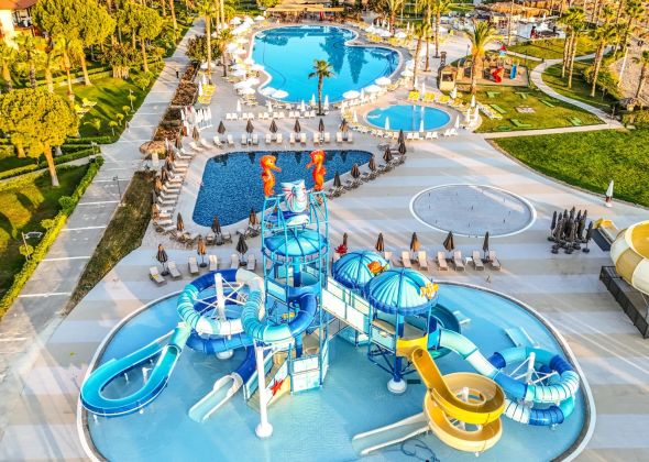 Намира се на 90 км от летище Анталия, на 100 км от центъра на Анталия, на 35 км от центъра на Алания, на брега на морето. Построен 1998 г., на обща площ от 90 000 м2. Реновиран 2020 г.