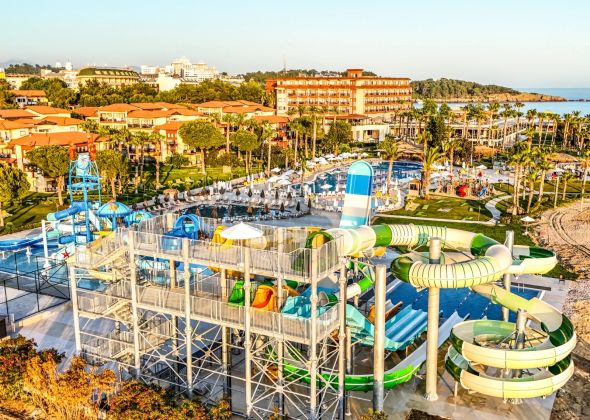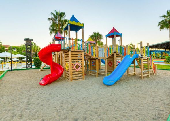 Основен ресторант, 3 а-ла-карт ресторанта (турски, италиански, средиземноморски - с предварителна резервация, съгласно концепцията на хотела), 5 бара, 3 открити и 1 закрит басейн, водни пързалки, амфитеатър, дискотека, СПА център, магазини, 3 конферентни зали, паркинг.