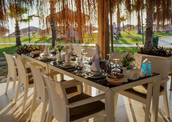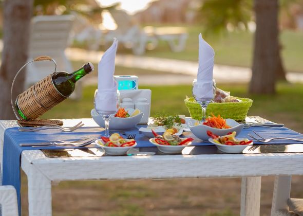 All Inclusive - закуска, обяд и вечеря на шведска маса, междинни хранения, местни алкохолни и безалкохолни напитки - без лимит (съгласно концепцията на хотела).