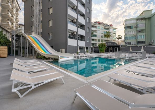 Намира се на 135 км. от летище Анталия, на 140 км. от центъра на Анталия, на 3 км. от центъра на Алания, на 250 м. от брега на морето. Построен е през 1999 г., с обща площ от 5.800 м2, реновиран през 2005 г.