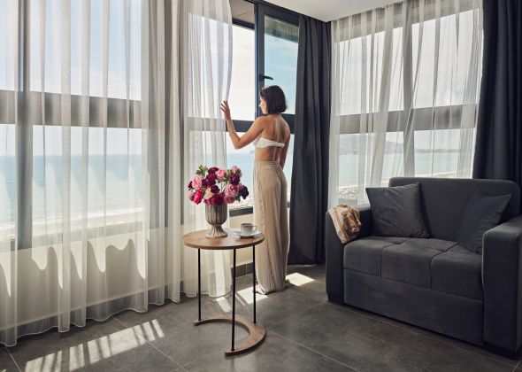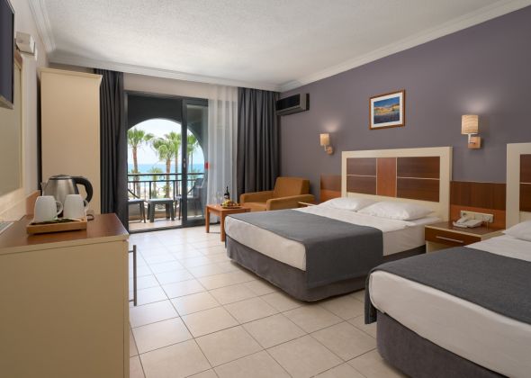 Хотелът разполага с общо 214 стаи, разположени в 3 шестетажни корпуси, от които 185 Standard room (18-25 м2), 2 Handicapped room 25 m², 28 Family room (2 спални, 1 баня – 55 м2). Всички стаи са оборудвани с климатик, телевизор, телефон, баня с душ/вана, сешоар, минибар (срещу заплащане), сейф (срещу заплащане). Почистване на стаите всеки ден - смяна на спалното бельо и кърпите - 2 пъти в седмицата.