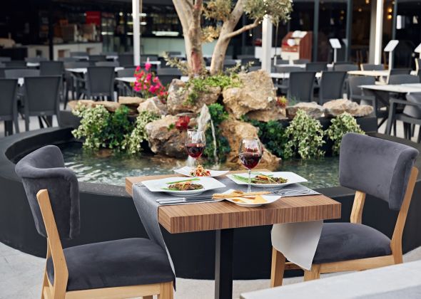 Основен ресторант, 5 бара, 3 открити басейна, водна пързалка, СПА център, конферентна зала. За децата: Детски басейн, детска площадка, мини клуб (4-12г.)