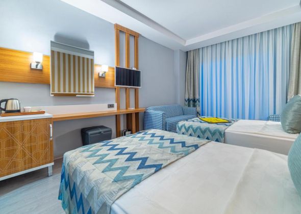 Хотелът разполага с общо 170 стаи, разположени в 6-етажна сграда, от които Standard rooms (33 м2) с капацитет за 2 възрастни + 1 дете. Premium suite (спалня и всекидневна, сауна - 66 м2). Всички стаи са оборудвани с климатик, телевизор, телефон, баня с душ/вана, сешоар, минибар (минерална вода), сет за кафе/чай, сейф. Почистване на стаите - всеки ден, смяна на спалното бельо и кърпите - 3 пъти в седмицата.