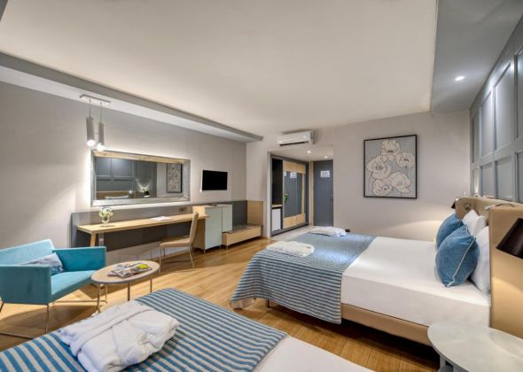 Всички стаи са оборудвани с климатик, телевизор, телефон, баня с душ, сешоар, сет за чай/кафе, минибар (безплатен), сейф (безплатен), балкон или тераса.
