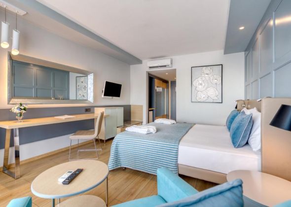 Хотелът разполага с общо 335 стаи, разположени в 9-етажна основна сграда, от които 125 Standard land view room (изглед суша, 28 - 30 м2), 60 Standard side sea view room (частичен изглед море, 28 - 30 м2), 82 Standard sea view room (директен изглед море, 28 - 30 м2),  10 Superior room (28 - 30 м2), 48 Family room (2 спални, 1 баня – 40 - 45 м2), 3 Swim Up room (с достъп до общ басейн – 28-30 м2),  7 Swim Up Dublex room (с достъп до общ басейн, 2 спални, 1 баня – 45 - 52 м2).