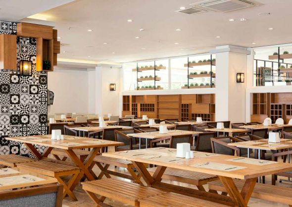 Основен ресторант, 2 снек ресторанта, сладкарница, 4 бара, 4 открити и 1 закрит басейн, 2 водни пързалки за възрастни и 3 за деца, СПА център.