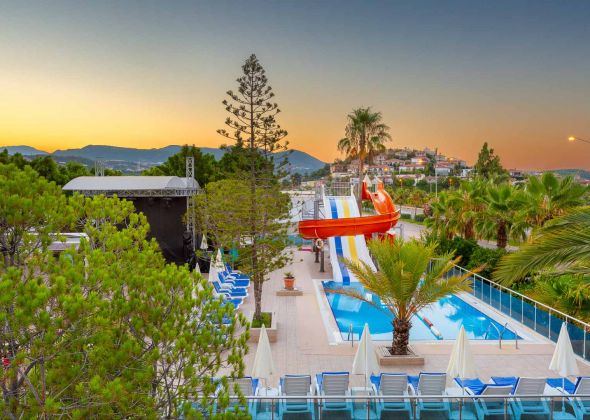 Намира се на 116 км от летище Анталия, на 126 км от центъра на Анталия, на 12 км от центъра на Алания, на брега на морето. Построен 1997 г., на обща площ от 10 000 м2. Частично реновиран 2019 и 2022 г.