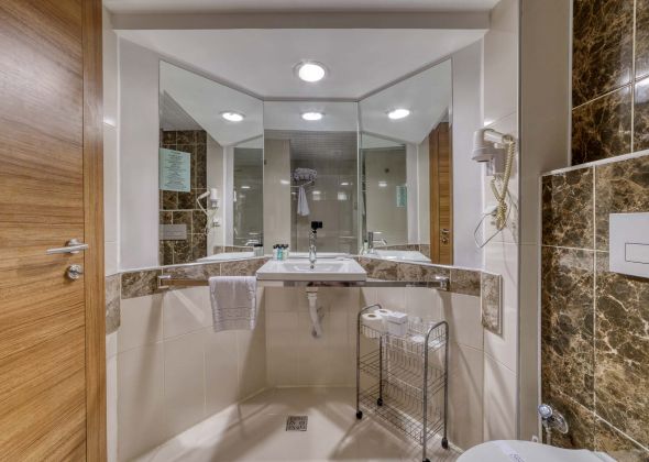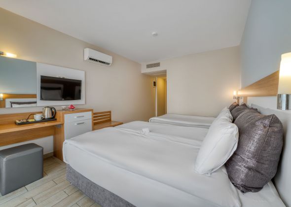 Всички стаи са оборудвани с климатик, телевизор, телефон, баня с душ, сешоар, сет за чай/кафе, минибар (безплатен), сейф (платен), балкон.