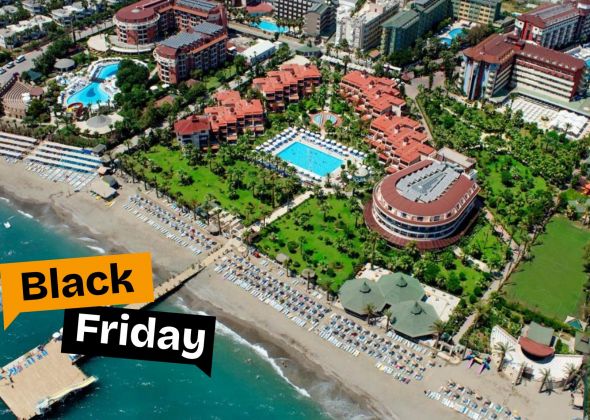 Основен ресторант, 2 а - ла - карт ресторанта(с предварителна резервация), 6 бара, 4 басейна, 5 водни пързалки, анимация, амфитеатър, интернет кафе (срещу заплащане), дискотека (безплатно), обмен на валута, магазини, 2 конферентни зали (500 места), паркинг. За децата: детски басейн, водни пързалки, детегледачка(заплаща се допълнително) Безплатни услуги: турска баня, сауна, фитнес център, дартс, волейбол, баскетбол, тенис на маса, Wi-fi Интернет Платени услуги: масаж, фризьор, Интернет кафе, център за красота, СПА - център, билярд Плаж: Пясъчно - чакълест. Плажни чадъри, матраци и шезлонги – безплатно.