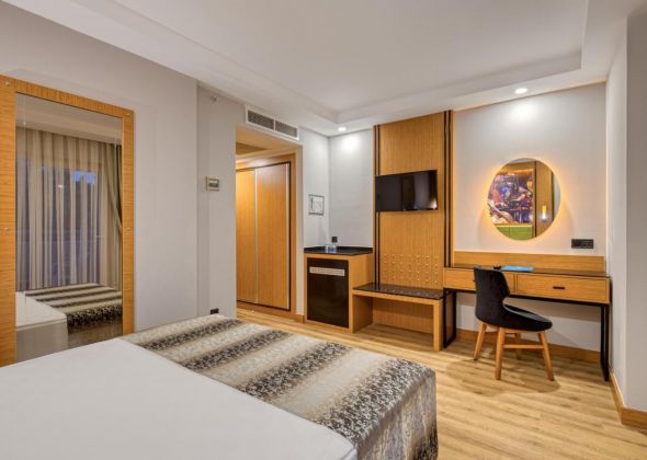 Всички стаи са оборудвани с телевизор, телефон, сешоар, чехли, минибар (след първия ден се зарежда само с вода), сейф.