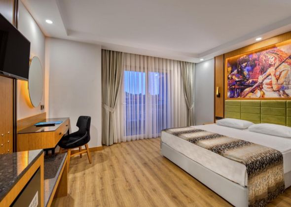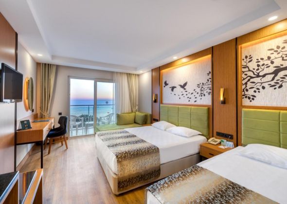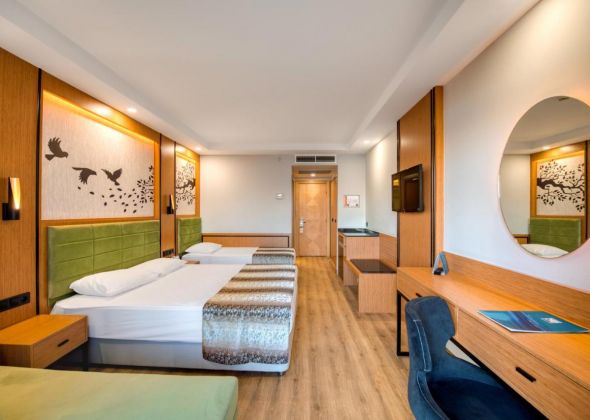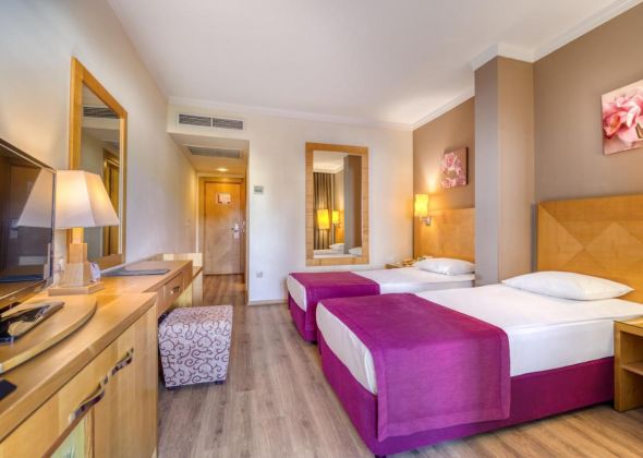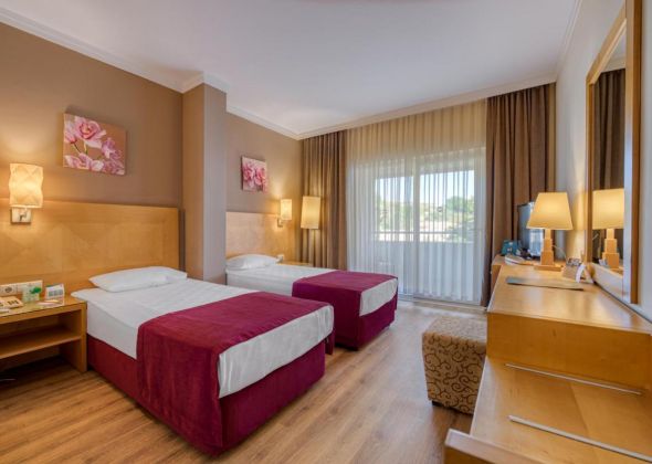 Хотелът разполага с общо 328 стаи, от които 239 стандартни стаи Standard Room Garden View (изглед градина – 20 м2), Standard Room Side Sea View (изглед частично море – 20 м2), 70 Large Room (изглед градина или страничен изглед море – 24 м2), 6 Duplex Family Room (2 спални, баня, изглед градина, 36-40 м2), 3 Family Sea View (2 спални, баня, изглед частично море, 36-40 м2).