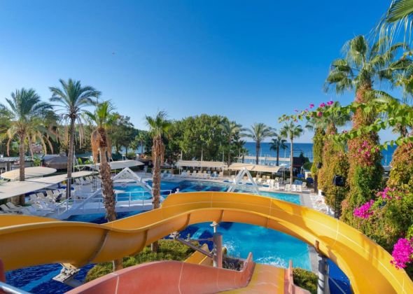Намира се на 95 км от летище Анталия, на 100 км от центъра на Анталия, на 30 км от центъра на Алания, на брега на морето. Построен 1994 г. на обща площ от 14 500 м2. Последно реновиран 2023 г.