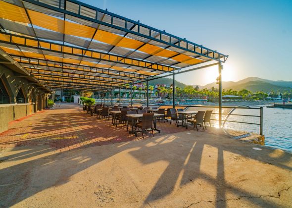 Основен ресторант, 1 а-ла-карт ресторант (рибен–1 безплатно посещение при минимум 7 нощувки), гьозлеме, снек ресторант, 7 бара, 2 открити басейна, водни пързалки, СПА център.
