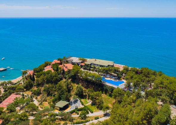 Намира се на 115 км от летище Анталия, на 125 км от центъра на Анталия, на 8 км от центъра на Алания, на хълм над брега на морето. Построен 1993 г. Реновиран 2020 г.