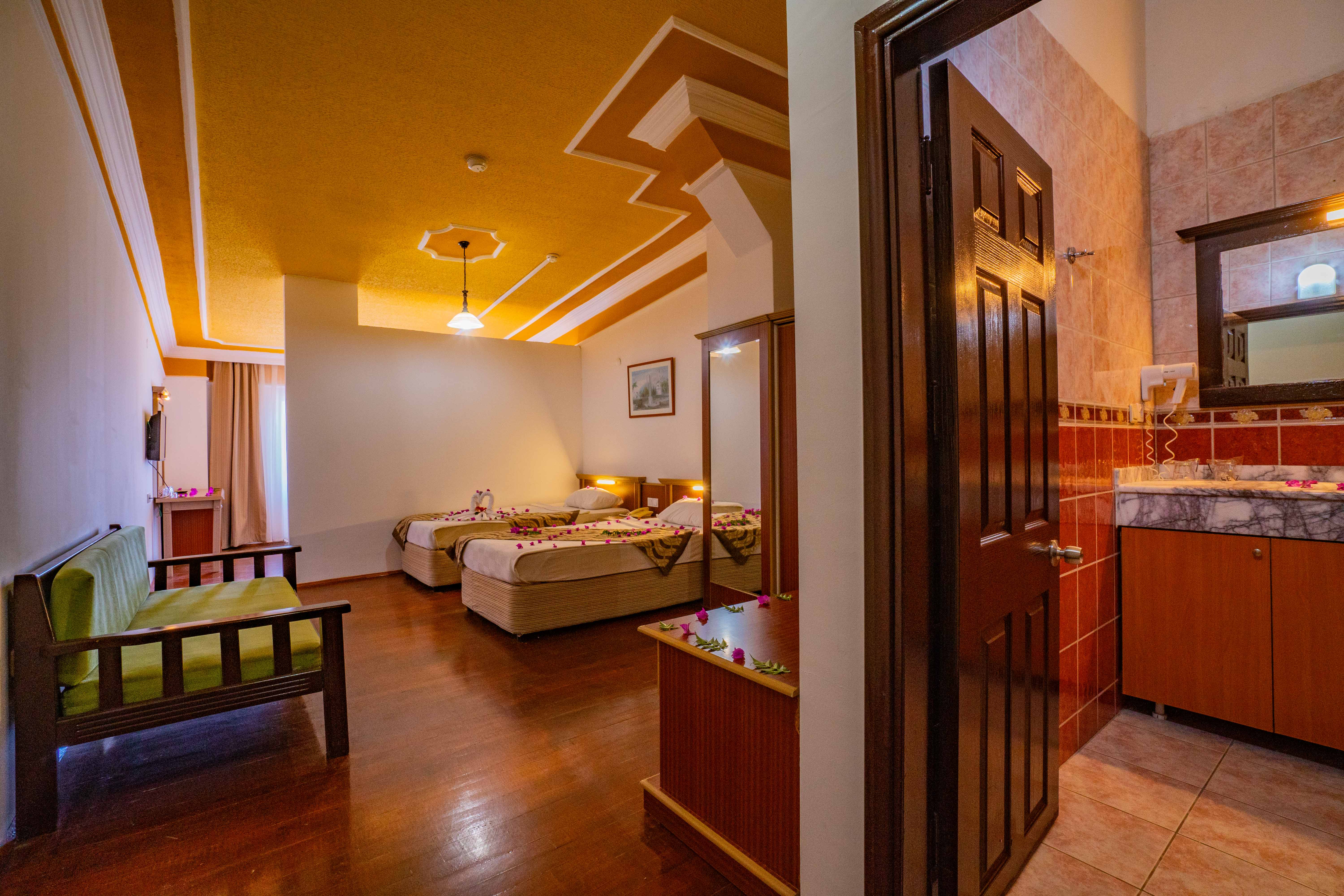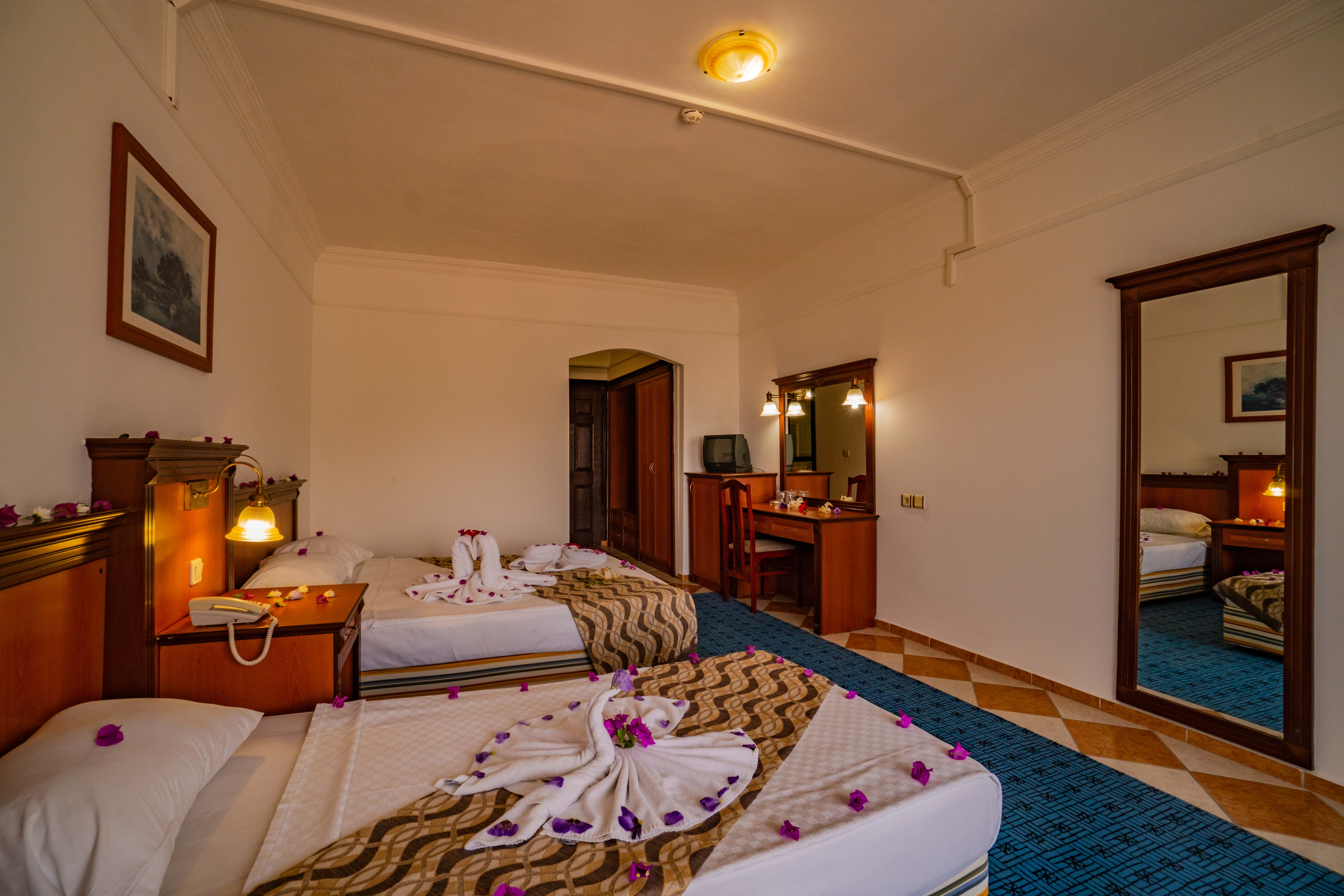 Хотелът разполага с общо 398 стаи, разположени в дву и три етажни сгради, от които Standard room (30 м2), 120 Family room (2 спални, 1 баня - 42 м2).