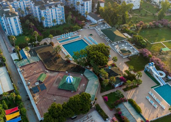 Намира се на 109 км от летище Анталия, на 119 км от Анталия, на 15 км от Алания, на брега на морето. Разположен на площ 30 000 м2. Построен през 1999 г.