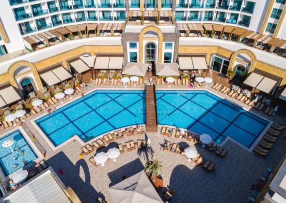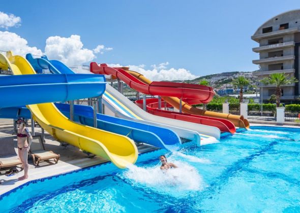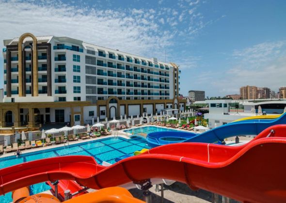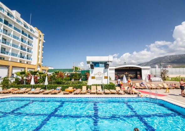 Намира се на 155 км от летище Анталия, на 170 км от центъра на Анталия, на 15 км от центъра на Алания, на 150 м от брега на морето. Построен 2016 г., на обща площ от 12 000 м2.