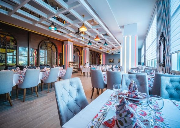 Основен ресторант, 2 а-ла-карт ресторанта (турски, средиземноморски – 1 безплатно посещение на 1 от ресторантите при минимум 7 нощувки), 2 снек ресторанта, сладкарница, 6 бара, 2 открити и 1 закрит басейн, водни пързалки, амфитеатър, СПА център, дискотека, магазини, 2 конферентни зали.