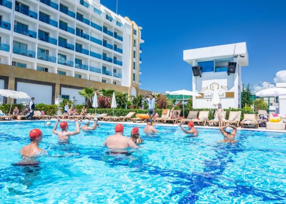 Безплатни услуги: Сауна, турска баня, парна баня, солна стая, фитнес, дартс волейбол, стречинг, водна гимнастика, водно поло, анимация, шоу програми, интерактивни игри, Wi-Fi (в общи площи).
