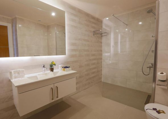 Всички стаи са оборудвани с климатик, телевизор, телефон, баня с душ, сешоар, сет за чай/кафе, минибар (безплатен), сейф (безплатен), балкон или тераса.