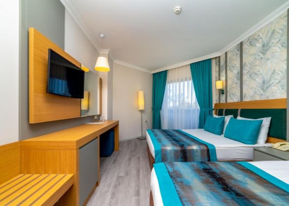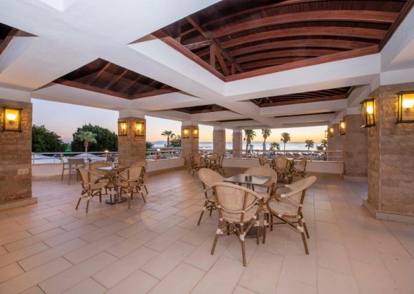 Основен ресторант, а-ла-карт ресторанта (рибен), 4 бара, дискотека, 4 октрити басейна, 2 водни пързалки, СПА център, 2 конферентни зали. Безплатни услуги: Сауна, турска баня, фитнес. Платени услеги: Масажи, пилинг, билярд, водни спортове, WiFi интернет За децата: детски басейна, мини клуб (4-11г.), тийн клуб (12-16г.), мини диско.