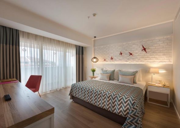 Разполага общо с 360 стаи, от които: Superior Land View Room (изглед градина - 24м2), Superior No Balcony Room (без балкон - 24 – 28,5м2), Superior Side Sea View Room (страничен изглед море – 24м2), Superior Dbl 4 Side Sea View Room (спалня с единично легло и диван, страничен изглед море - ׅ28,5м2), Superior Dbl 4 Land View Room (спалня с единично легло и диван, изглед градина - 28,5м2), Superior Disabled Land View Rooms (2 without Balcony) (изглед градина, без балкон - 24 – 28,5м2), Deluxe Suite with Jacuzzi & Direct Sea view Room (спално помещение, трапезария с диван, неспресо машина – 73-86м2), Penthouse Suite with Land View (разположени са в горната част на сградата, спално помещение, трапезария, гардеробна, 2 балкона – 56m2), Family Suite Land View Room ( 2 спални помещения с изглед градина – 83м2), Family Suite Sea View Room (спалня, трапезария с диван, балкон, 2 бани, изглед море – 58м2), Deluxe Direct Sea View Room ( спалня с единично легло, изглед море – 30м2).