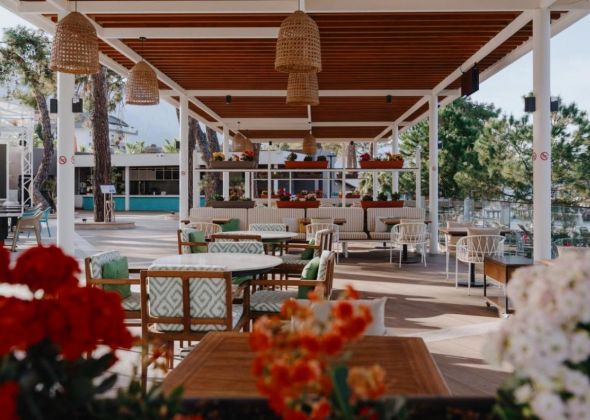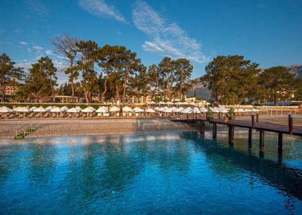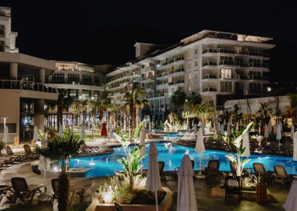 Намира се 55 км. от летище Анталия, на 45 км. от центъра на Анталия и на 600 м. от центъра на Кемер на брега на морето. Построен през 2003г. с обща площ 30 000 м2. последно реновиран през 2023г.