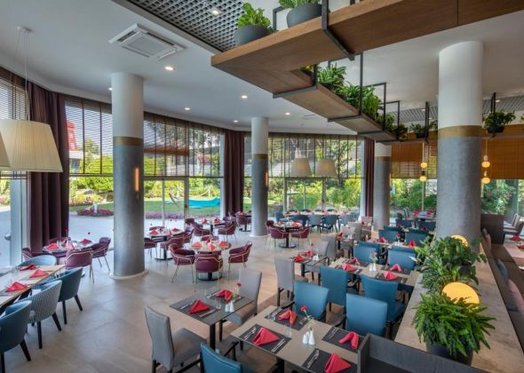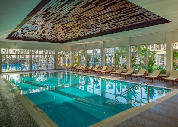 Основен ресторант, 4 А ла карт ресторанта (Safran - турски, Asian - азиатски, Olive - италиански, Ocean – средиземноморски. Посещение на ресторантите съгласно концепцията на хотела), 4 открити и 1 закрит басейн, аквапарк, 4 бара, СПА център, конферентна зала, паркинг.
