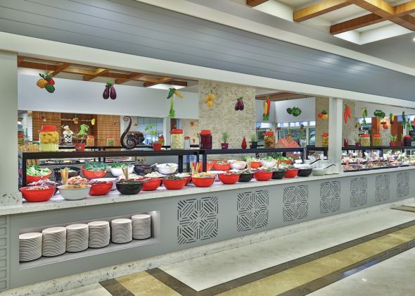 Основен ресторант, а - ла - карт ресторант (с предварителна резервация), 4 бара, 3 открити и 2 закрити басейна, водни пързалки, магазини, СПА център, дискотека, кино, конферентни зали, паркинг. За децата: Детска площадка, мини клуб (4-12 г.), 2 детски басейна – външен и вътрешен, водни пързалки, анимация. Безплатни услуги: Турска баня, сауна, джакузи, фитнес, дартс, тенис на маса, тенис корт (с предварителна резервация), баскетбол, аеробика, водна гимнастика, кино, жива музика, анимация, интернет. Платени услуги: Масаж, фризьор, търговски център, билярд, боулинг, джаги, интернет кафе (с предварителна резервация), видеоигри, химическо чистене, лекар, водни спортове, наем на топки и ракети за тенис, осветление за тенис корта.