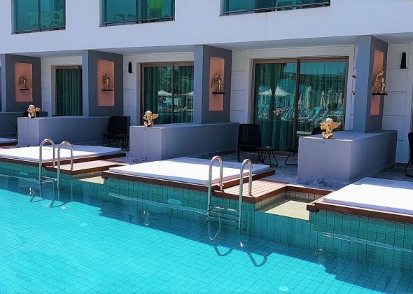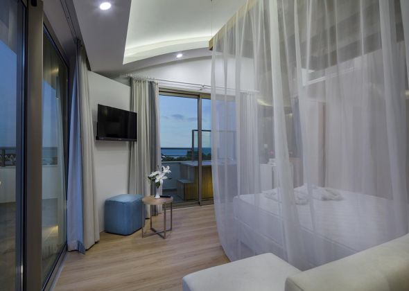 275 Standard Room (изглед градина или страничен изглед море – 22 м2), 50 Standard Bunkbed Room (1 спалня и 2-етажно легло, изглед градина или планина – 26 м2), 3 Disabled Rooms (стаи за инвалиди, на първи етаж в основната сграда, гледка градина или планина – 22 м2), 32 Family Room (2 спални със свързваща врата, гледка градина – 33 м2), 10 Love Suit (спалня с двойно легло, тераса с джакузи, изглед басейн или море – 22 м2), 60 Garden Block Standard Room (изглед градина – 26 м2), 16 Swim -Up Room (спалня, тераса с директен достъп до общ басейн – 26 м2).