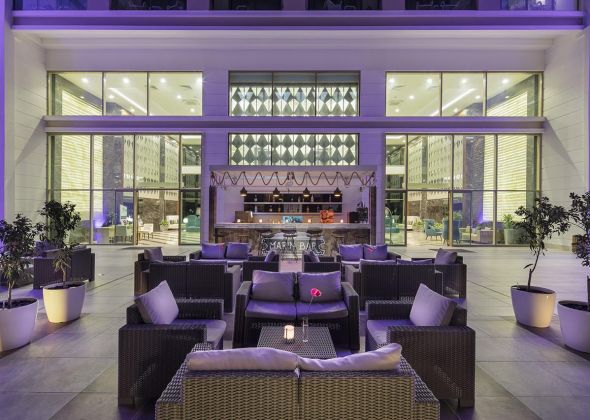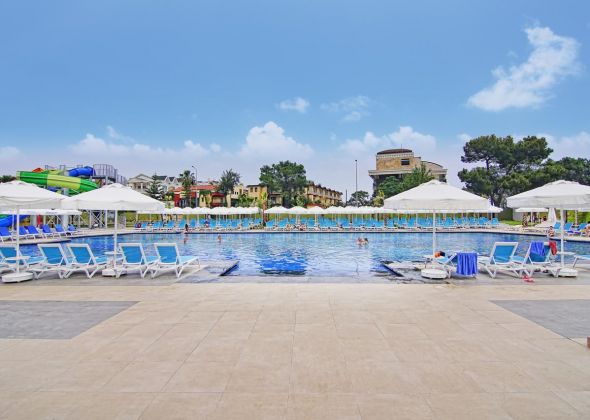 Основен ресторант, 2 а-ла-карт ресторант (рибен и стек – срещу заплащане, с предварителна резервация), снек ресторант, 5 бара, кафетерия, 4 открити и 1 закрит басейн, аквапарк, амфитеатър, СПА център, магазини, конферентна зала.